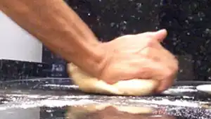 Hacemos una bola, agregamos un poco de harina a un recipiente, colocamos la masa, la tapamos con papel film y la dejamos reposar, en un lugar cálido durante 1 hora o hasta que doble su tamaño.